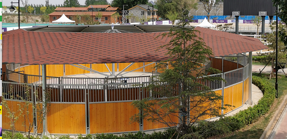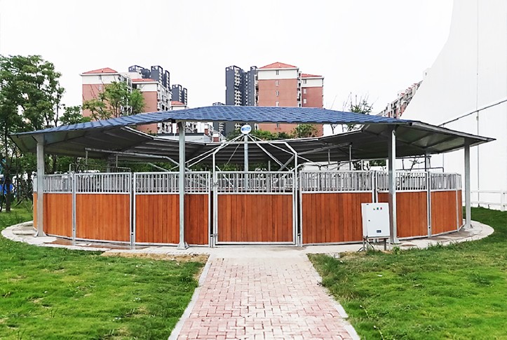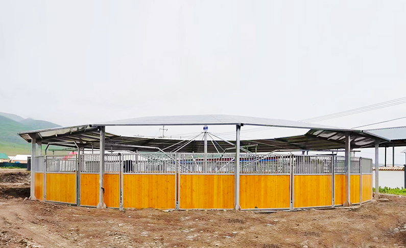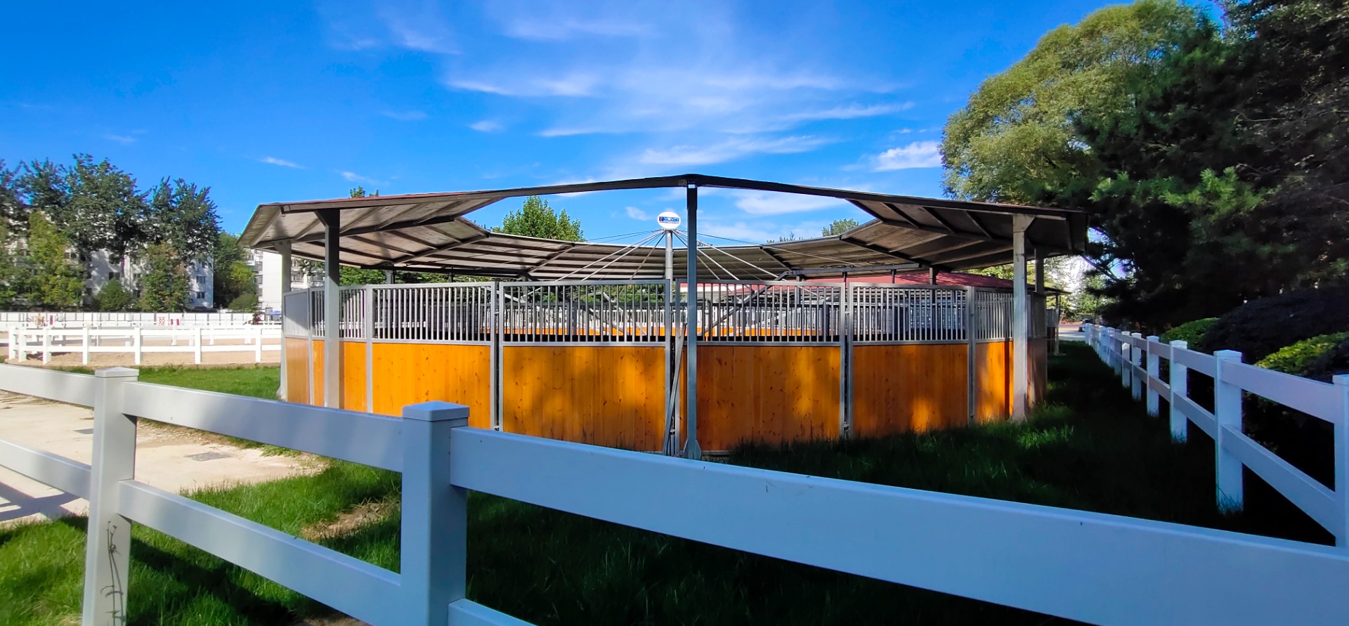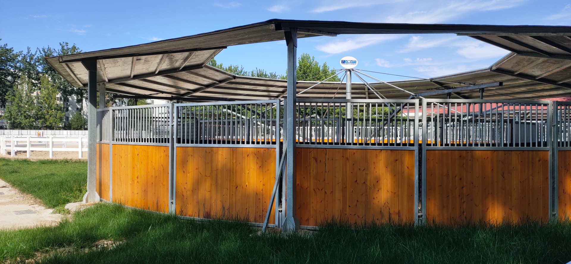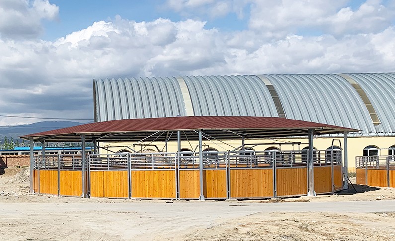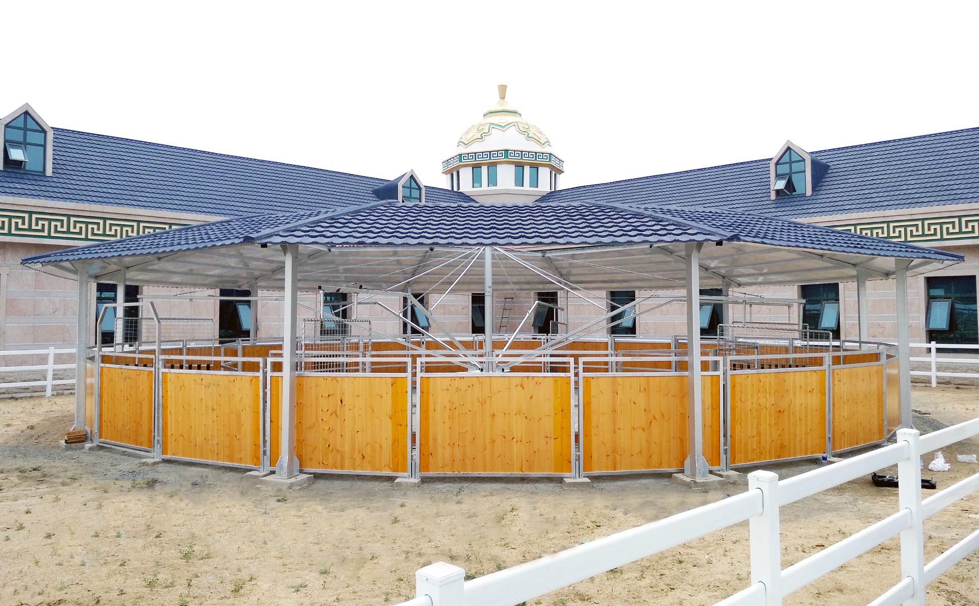 Horse training is a comprehensive endeavor. The circular semi-enclosed roof walker provides reliable shelter during rain or harsh weather, ensuring continuous training. Enclosed fencing enhances safety and focus, while optional features like lighting, dust suppression, and windproof netting offer added functionality. Roofing options include corrugated panels, fiberglass tiles, or metal sheets—durable materials that also make the walker a visual highlight of the facility.