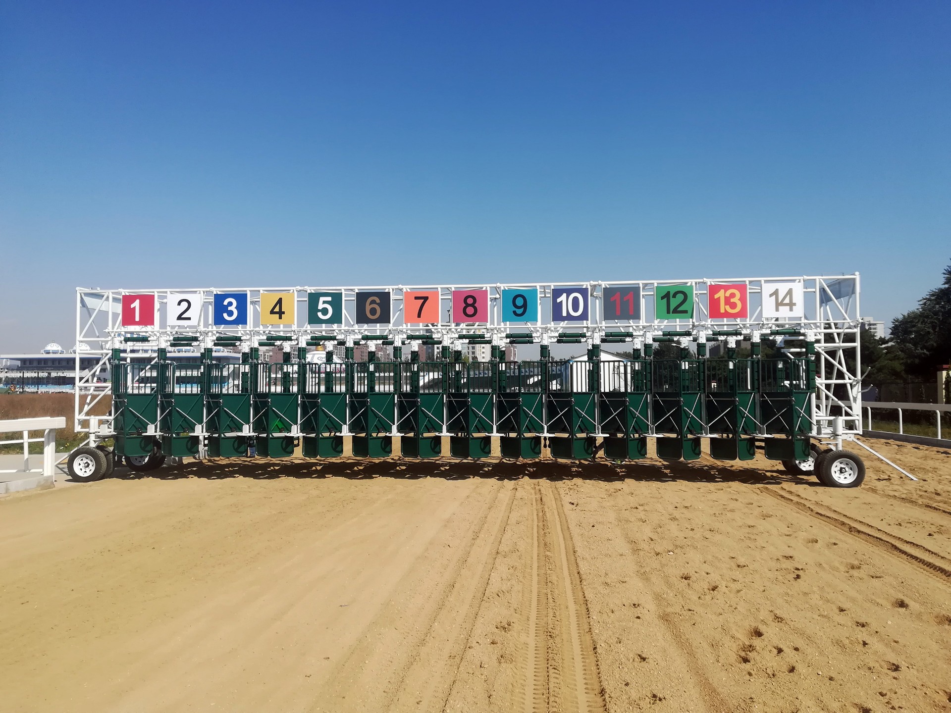 The seamless gate release linkage allows all stalls to open simultaneously, guaranteeing accuracy and fairness at race start.
