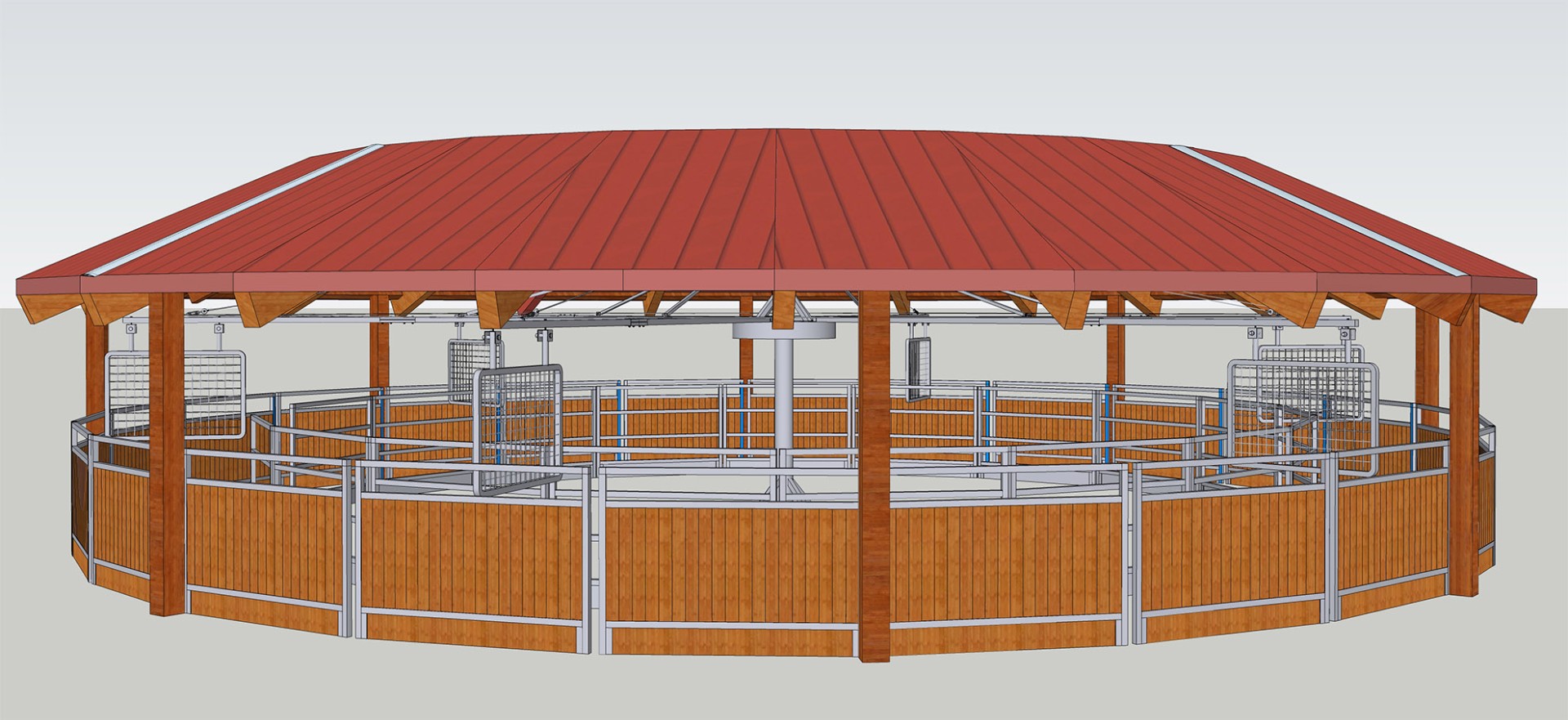 Elegant stables, refined barns, durable partitions, distinctive windows, and high-quality doors are the hallmarks of our offerings. Our horse walkers operate smoothly and quietly, providing horses with a high level of training support.