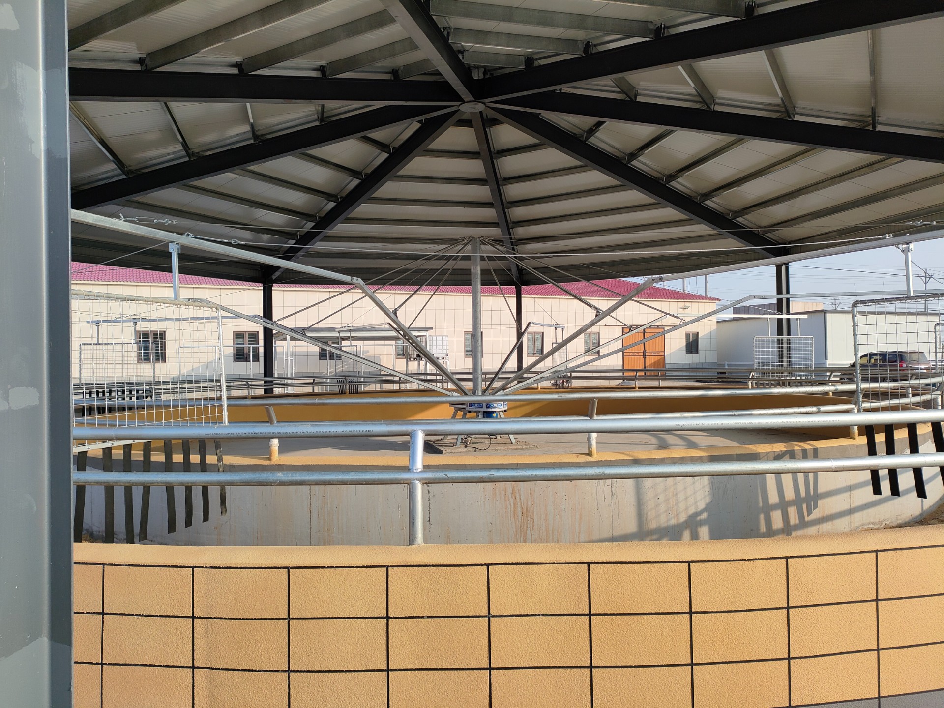 This overhead-motor horse walker has a diameter range of 30–66 ft (approx. 9–20 m) and accommodates 3–8 horses running simultaneously. It utilizes 1 German NORD variable-speed gear motors, with Siemens SINAMICS controller enabling automatic forward/reverse direction and stepless speed adjustment.
