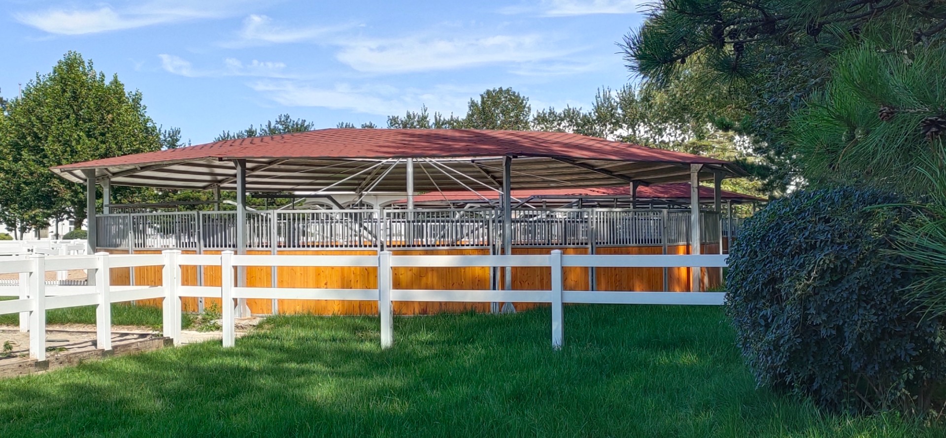 Available in multiple sizes: 30 ft, 43 ft, 49 ft, 59 ft, and 66 ft in diameter (approx. 9 m, 13 m, 15 m, 18 m, and 20 m), supporting configurations for 3, 4, 6, or 8 horses, suitable for various venues and requirements.