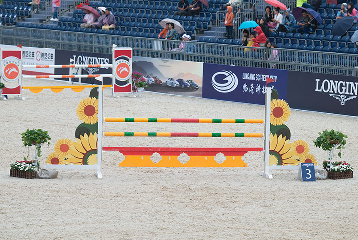 Our equestrian jumps are used in prestigious competitions such as the Asian Games, FEI events, and Longines-sponsored shows. Standard components are sold in pairs, and you can combine poles and fillers in different colors to create a wide variety of visual styles. To highlight the theme of a competition or its regional character, we also offer customized obstacle designs tailored to your branding or event identity.