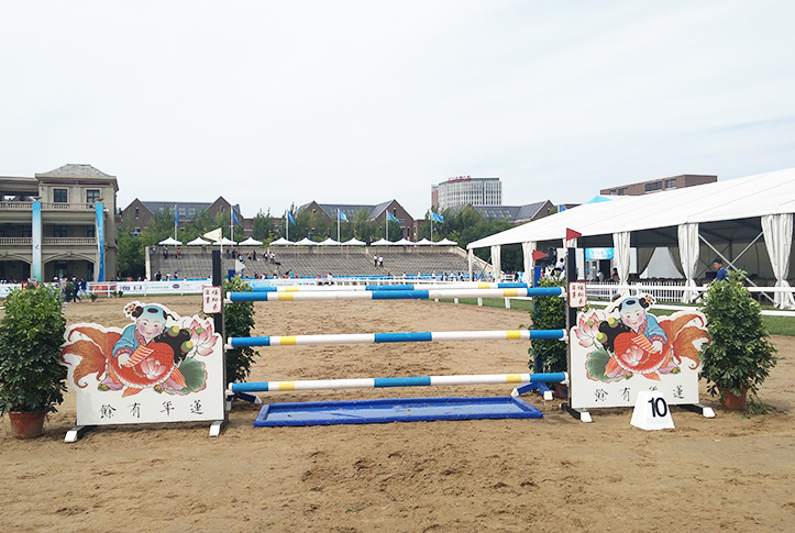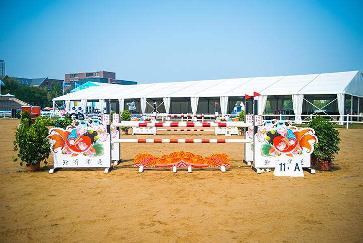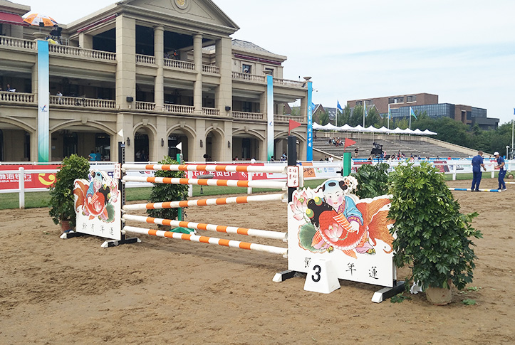Our equestrian jumps are used in prestigious competitions such as the Asian Games, FEI events, and Longines-sponsored shows. Standard components are sold in pairs, and you can combine poles and fillers in different colors to create a wide variety of visual styles. To highlight the theme of a competition or its regional character, we also offer customized obstacle designs tailored to your branding or event identity.