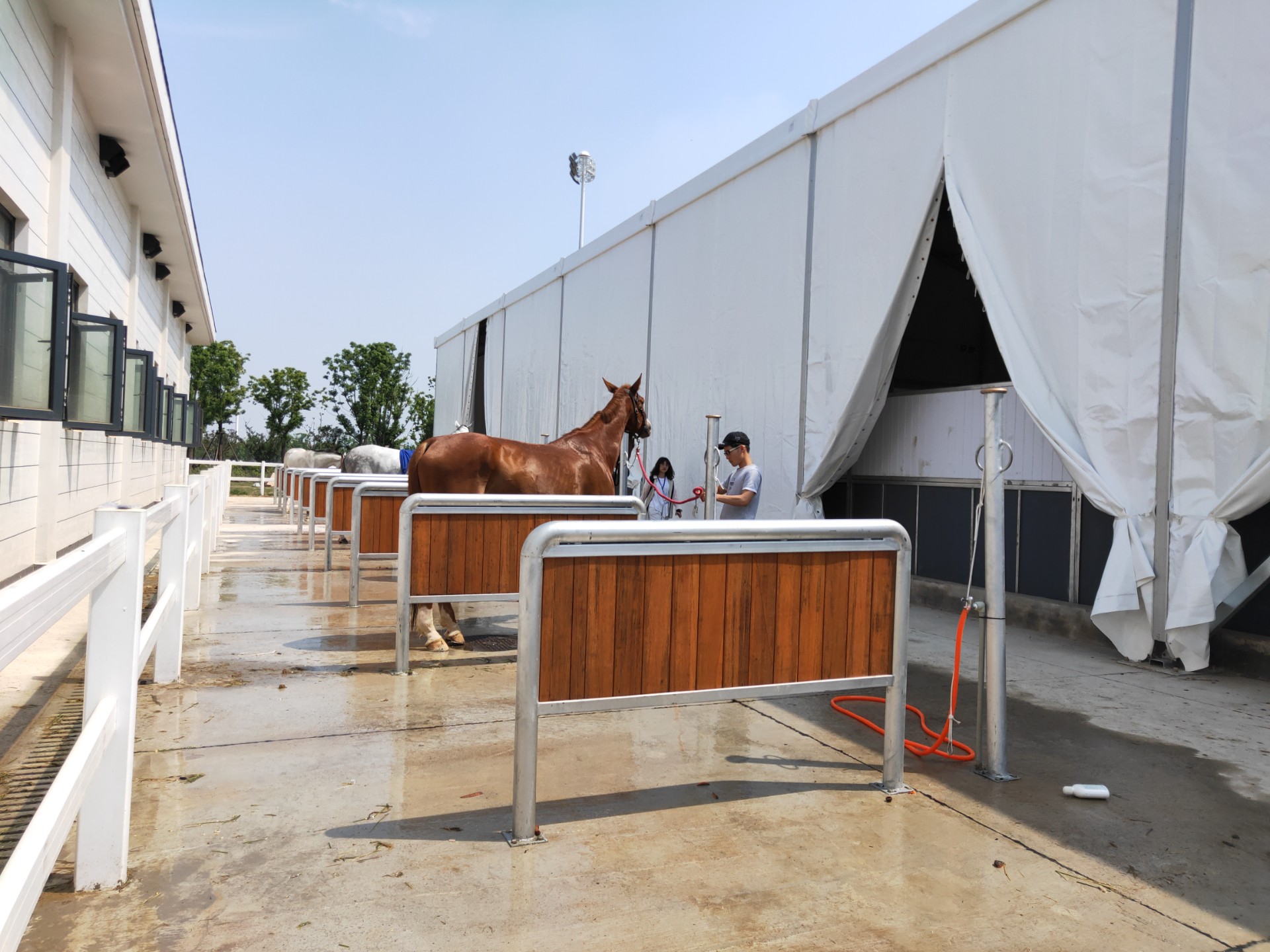 Our washing bays and tie posts are designed to provide a professional, comfortable, and secure environment for both horses and riders. The spacious wash areas feature excellent drainage systems to prevent water accumulation, ensuring a clean, dry, and stable surface for safe footing during grooming or bathing.